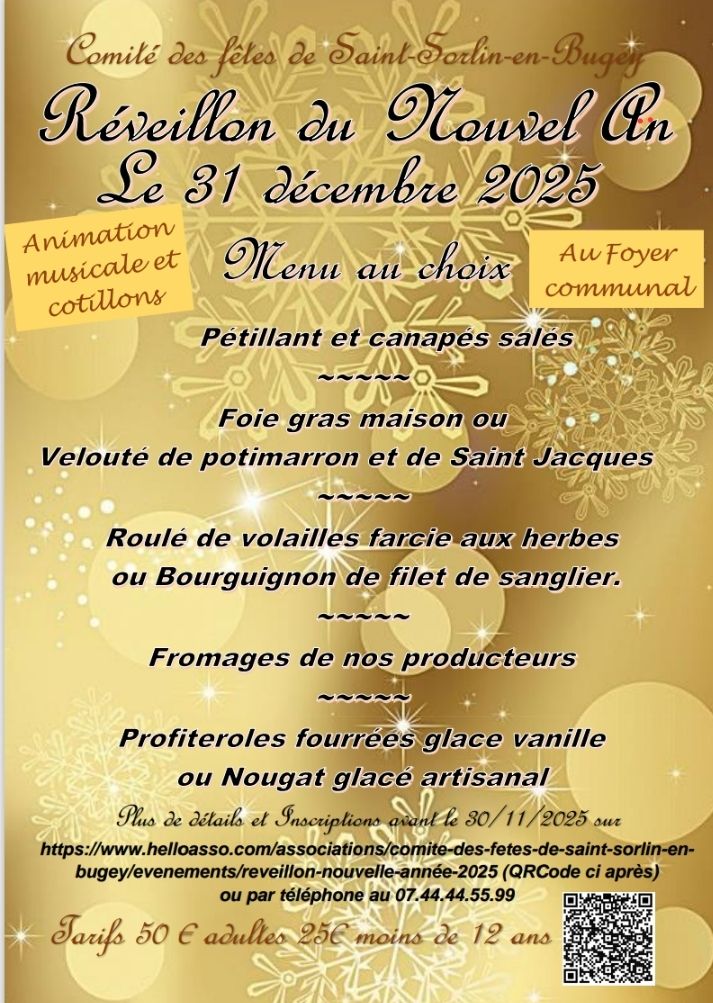 🎉 Réveillon du Nouvel An à Saint-Sorlin-en-Bugey ! 🥂