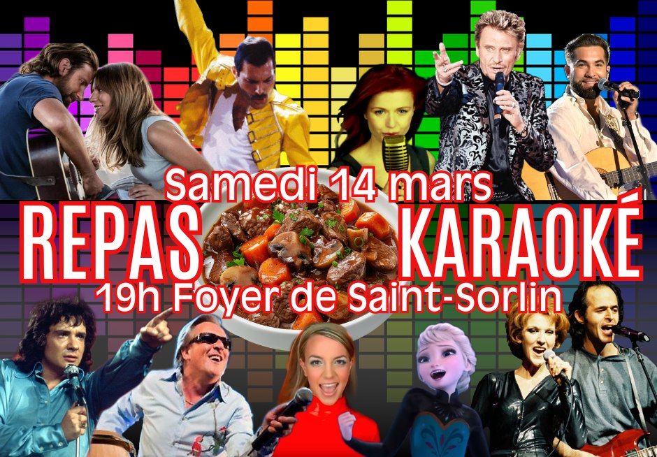 Le samedi 14 mars, c’est REPAS KARAOKÉ à 19h au Foyer de Saint-Sorlin.